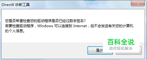 此时会弹出一个DirectX诊断工具对话框,提示我们是否希望检查,点击确定即可