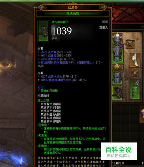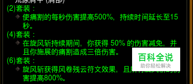 首先是套装选用荒原套效果如下,痛割舍弃!那围绕旋风斩完成效果技能搭配就是关键。