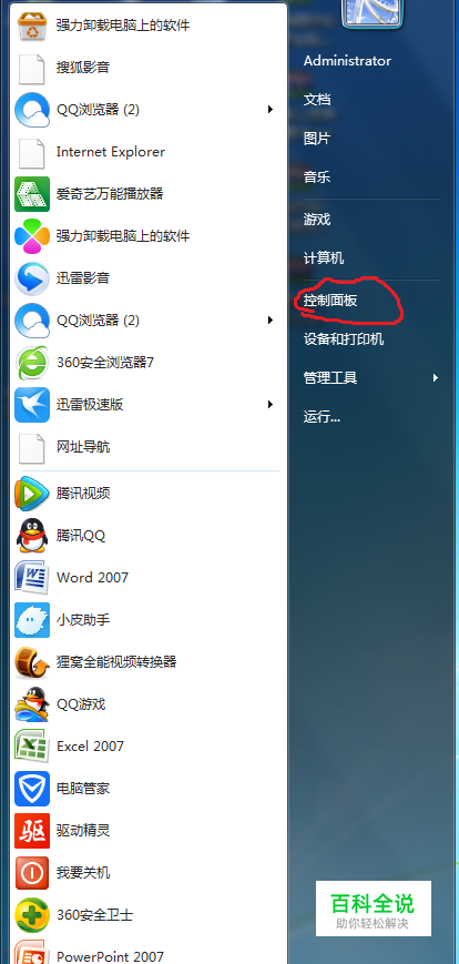在电脑桌面打开左下角的开始菜单,就可以看到如图一!然后点击进入控制面板!