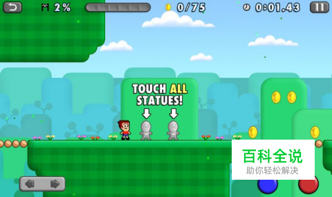 游戏的控制简单,只有左右,跳跃与下滑的按键,玩家需要解救的“石像”就会出现在玩家所经过的路上,玩家只要经过就完成解救。