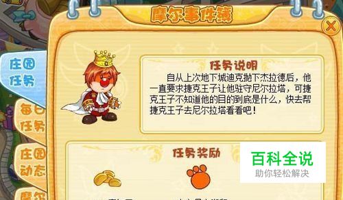 进入摩尔庄园,点击“摩尔事件薄”,在“庄园任务”中找到“杰拉德的异动”项,我们就可以查看本次任务的介绍了。