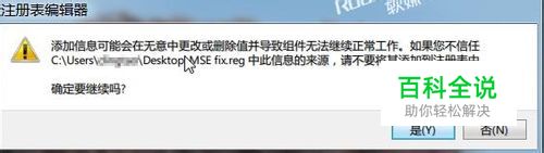 双击桌面上的 MSE Fix.reg 文件导入注册表,弹出确认提示时,点击“是”。