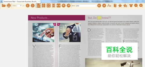 使用该阅读器打开一份PDF文档, 在“查找”框内填写文字,可以快速查找到文档内所处的位置。