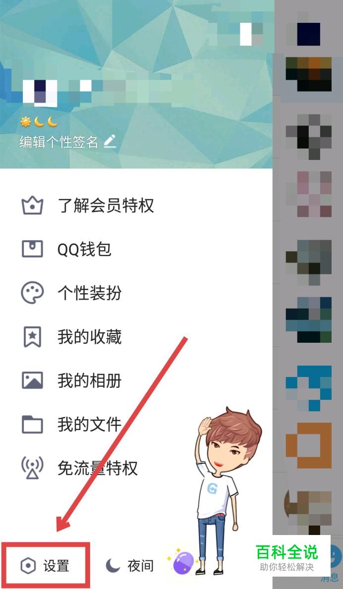 在从左边弹出的窗口左下角找到“设置”,点击进入。
