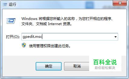 点击电脑左下角“开始菜单”中“运行”按钮,在弹出界面输入"gpedit.msc” 点击“确定”按钮。