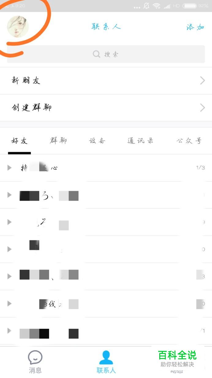 打开QQ软件,点击你QQ头像的位置,如下图所示