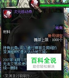 dnf次元移动券是最近更新的新活动深渊派对刷刷乐里面的,可以用来进入地下城活动使用。