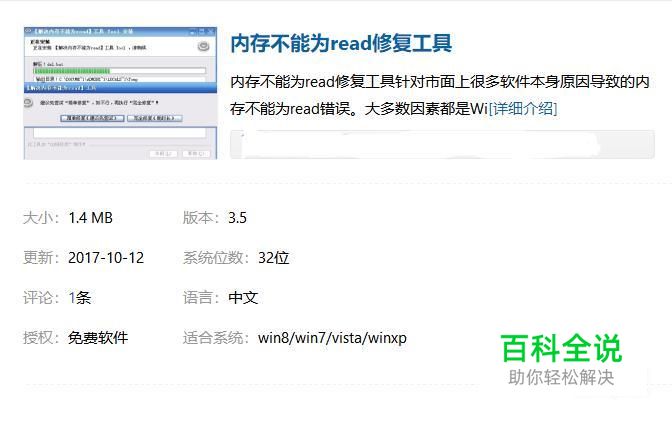 有的软件在window新版系统下出现的不兼容,提示内存不能为read,之后程序会自动关闭,下载内存修复工具可以解决这个问题