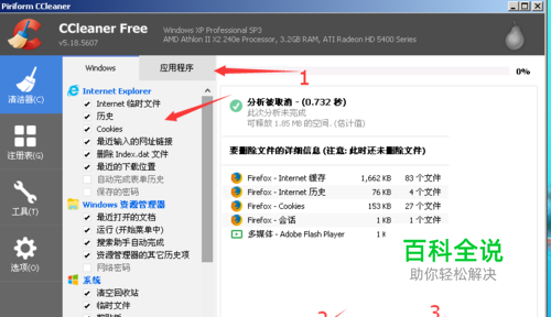 点击分析,然后运行清洁器,Cookies及临时文件、会话,缓存等全都能清理掉。
