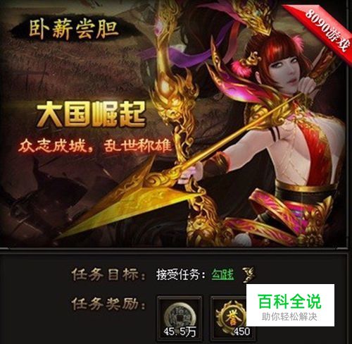 首先,要了解的是,卧薪尝胆任务,只有弱国子民的玩家才可以接受并完成的。强国的玩家是不可以接受的,弱国子民每天可到自己国家王城,找到NPC-勾践接取任务