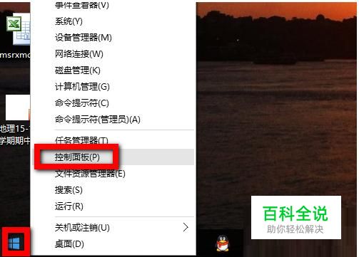 首先进入电脑桌面,点击左下角的开始图标,选择控制面板,如图所示。