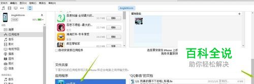 单击左侧栏中的“应用程序”,右侧会出现自己的手机中安装的应用程序。然后最右侧的下拉框一直往下拉,文件共享下面会出现QQ影音,点击选中QQ影音,然后单击“添加文件”,添加自己想要播放的视频。