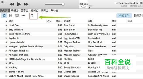打开电脑端的iTunes,然后单击iTunes上的手机图标,如图所示