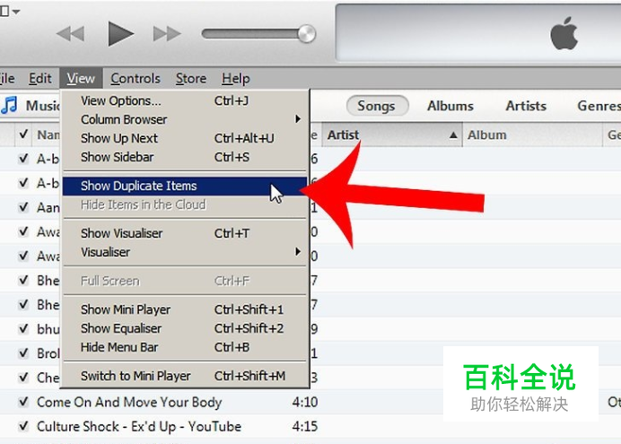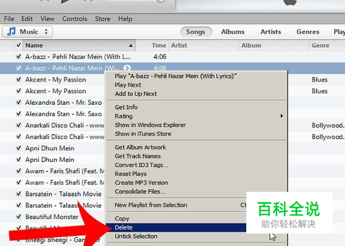 重复的歌曲被显示出来:所有你iTunes资料库里重复的歌曲都会被显示。你现在可以右键这些重复的歌,然后选择“删除”。