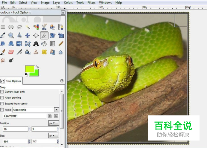 裁剪掉图片不用的部分。点击矩形选取工具,选取保留部分。点击“图片”“裁剪到选择区域”来裁剪。