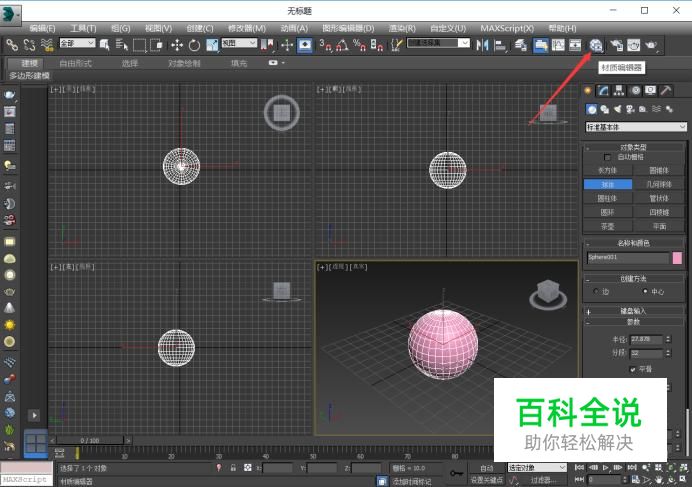 先打开3D max 这个软件,先创建一个模型,在工具栏中找到材质编辑器。