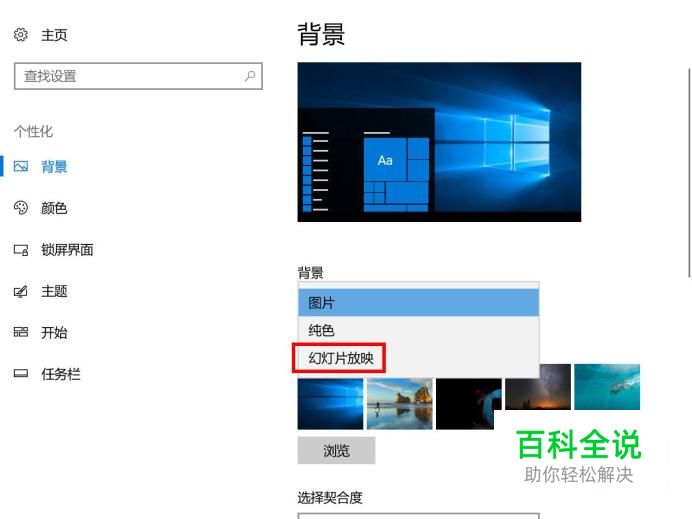 弹出的界面,我们将背景设置为幻灯片放映;