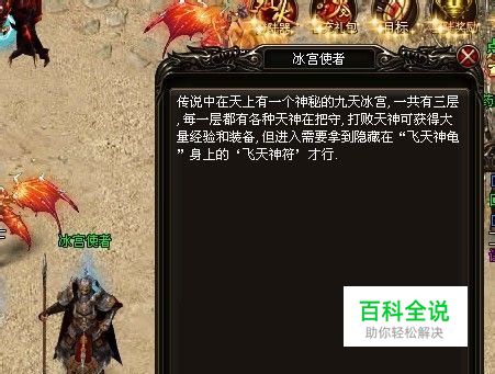 副本地图规则: 1、活动不限时间,只要拥有相应物品即可开始。在土城175:200坐标处每天从00:40——17:40会每隔1小时会轮流刷出1个“飞天神龟”。击杀后掉落 “飞天神符”,拥有该物品的玩家可以找NPC‘冰宫使者’将整个队伍传送到九天冰宫1层。 2、进入九天冰宫条件:使用者拥有‘飞天神符’,自身战力或者自身队伍中所有成员战力>3000,传送队伍需要队伍成员在周围附近。而进入地图后,每一层所需要的战力都有所不同。 3、在“九天冰宫”的三张地图中,每一张都有一个NPC,名字为“九天冰宫一层护卫、九天冰宫二层护卫、九天冰宫三层护卫”。传送到本层时都会落到NPC的旁边,可以进入下一层或者返回土城。 4,九天冰宫共三层,每一层都有相应的高经验、高掉落怪物,击杀这些怪物后有几率获得大量极品装备,还有一定几率获得特殊戒指以及与怪物掉落的物品“XX神韵”,收集这些物品“神韵”可以兑换60级各职业套装。 5,玩家进入九天冰宫最多呆4个小时。 6、收集道具,并到npc处对话进入地图。首先进入的是九天冰宫一层,这一层分别有七位大神、他们身上拥有巨大的珍宝,打败他们后可获得盖世装备及高额经验。 7、在打败一层所有天神后,当然怪物掉落各种道具记得收集起来哦,可以换取60级装备呢,然后进入“九天冰宫二层”,第二层也有六个怪物。 8、在历经重重困难后,并成功打败二层所有怪物后,即将进入最为困难危险的“九天冰宫三层”,三层驻守着四位天王。 9、每一层的怪物都拥有自己的技能,非常恶心,变态得非常,各种减速状态,拉人技能等等。小编建议,最好配合所有职业,特别是远程攻击尤其重要。