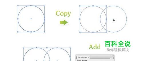 首先,使用椭圆工具画一个圆。用选择工具选中这个圆,按住Alt键(用于复制已选中的对象)和Shift键(用于约束对象位置),拖拽出圆的副本。选中两个圆并在路径查找器里按联集并扩展。