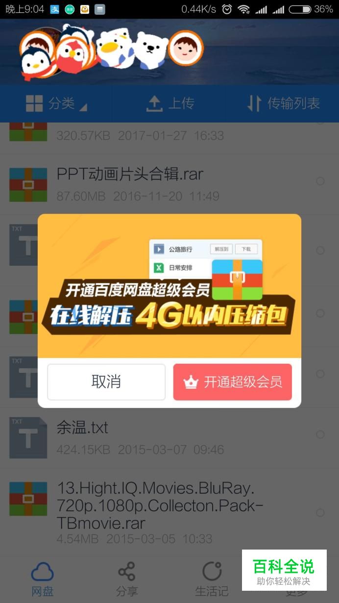 先在百度网盘里面找到一个压缩文件,这时候直接打开是不可以的,除非是开通超级会员才能够打开。