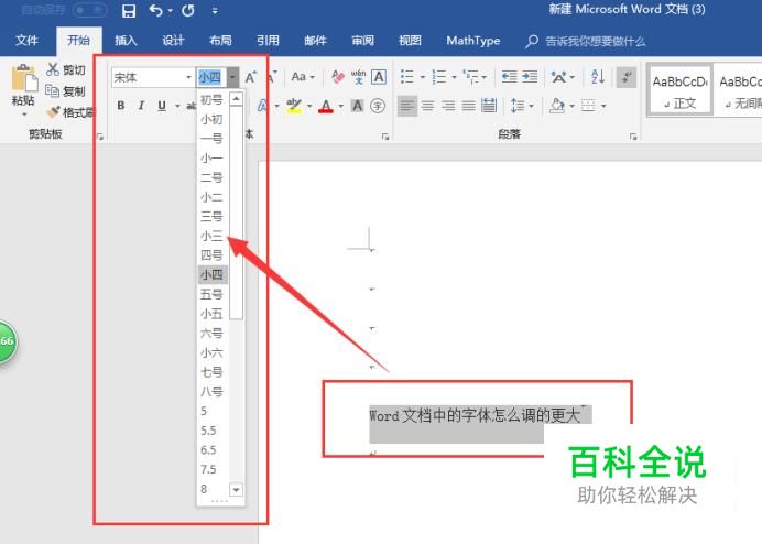 方法一:选中这些字,按照如图所示操作步骤,可以调整为任意大小。本例调整为“宋体三号”。