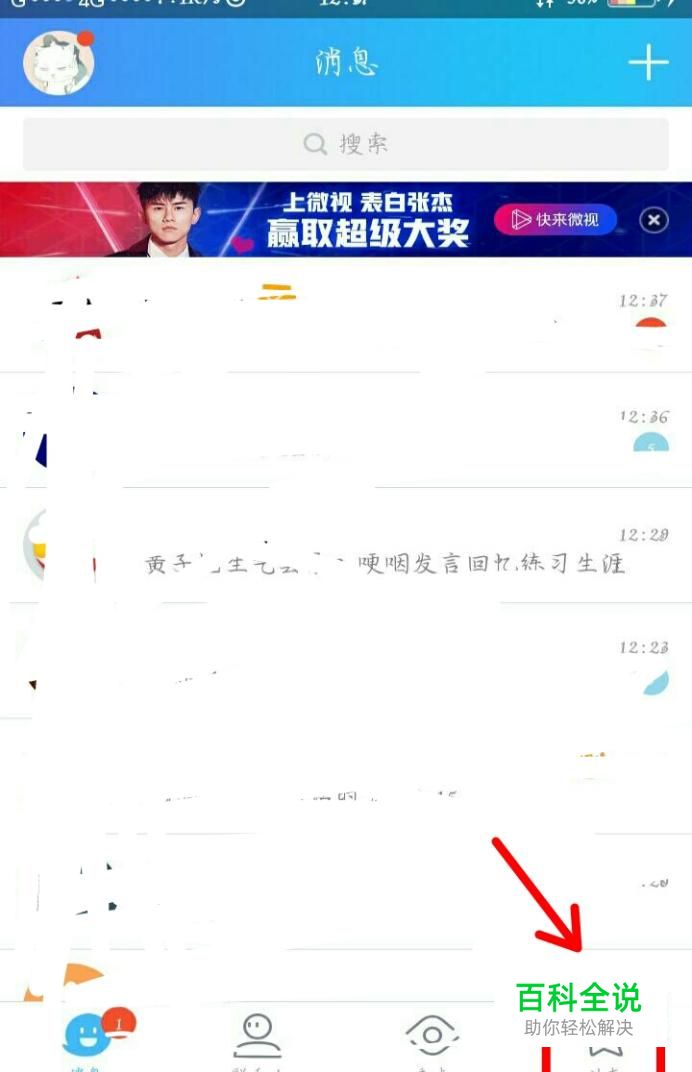 我们在这个定时说说中,找到我们需要删除的定时说说,点击它右边第一个三角形符号,如图所示。