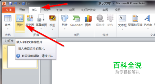 第三,当打开“插入”图片对话框时,先点击“查找范围”的下拉列表,找到图片。然后选择图片,点击“插入”按钮,这样图片就插入到ppt中里了。