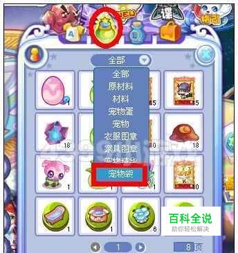 1、点击你的【背包】找到【魔法物品】,在下拉菜单中选择【宠物袋】