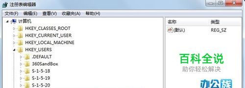 点击HKEY_USERS项,双击展开,找到S-1-5-21-1786443312-1599802004-3461928412-1001(此项不同的电脑可能键名不一样)双击展开。