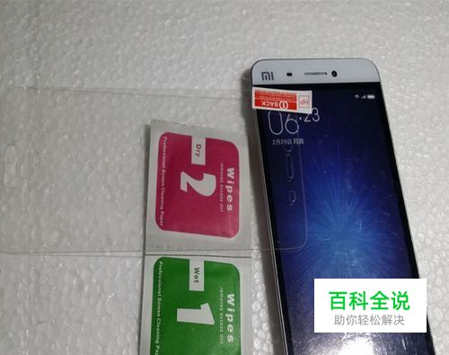 首先先把酒精包的1打开这是一个湿的酒精包先把手机屏幕上的脏东西插干净,然后用酒精包的2这是一个干的酒精包再把屏幕插干