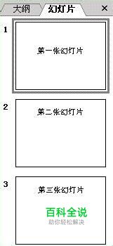 如下图!演示文稿一共有三张幻灯片,编号分别是1、2、3;为了区分每一张幻灯片,俺故意在幻灯片里面分别输入了“第一张幻灯片”、“第二张幻灯片”、“第三张幻灯片”等文字;