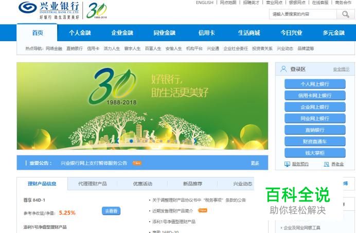 然后点击兴业银行的链接,进入兴业银行的官方网站。