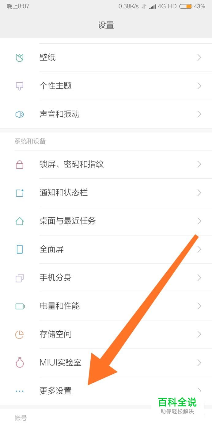 然后进入“更多设置”设置项,不同品牌手机的设置菜单略有差异。