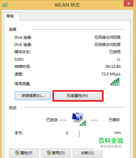 前提:其他设备,如手机或平板可以连接该无线网络,而且可以正常上网,但就是你的win 8.1连接它受限不能上网。(我们这里不管接入点本身的问题) 1、状态如下图所示: 图中我们可以看到WLAN已经连接到了SSID为"LL"的无线网络,而且我的手机也已正常连接,上网没有问题。我今天才更换的win 8.1,一来就发现网络有问题... 2、下面我们点击上图中的红色框内的 WLAN(LL) ,弹出 WLAN状态 3、点击“无线属性”弹出 XX无线网络属性 4、选择“安全”; 5、再进入“高级设置” 勾选“为此网络启用联邦信息处理标准(FIPS)兼容”,再确定...关闭即可。 6、如果还是受限,请将该网络断开后再次连接。 附: 联邦信息处理标准 Federal Information Processing Standards (FIPS) 是在美国政府计算机标准化计划下开发的标准。这个计划定义了用于政府机关的自动化数据处理和远程通信标准。FIPS遵循美国国家标准协会(ANSI)标准,政府机关必须遵从FIPS标准,供应商则基于商业用途有选择地遵循ANSI定义的标准。国家标准和技术协会(NIST)负责草拟规范。已接受的标准包括那些ASCII字符编码方案、数据加密及计算机编程语言,如COBEL和FORTRAN等。