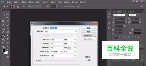 首先打开软件,然后新建一背景层,尺寸1280X720,分辨率为300,背景色默认为白色。这里的尺寸根据自己的需要而设定。如图: