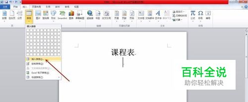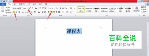 打开Word文档,输入标题“课程表”调节字体大小并为:宋体,小初,然后居中