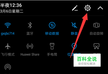 首先我们下拉通知栏,然后点击如图所示的设置图标。