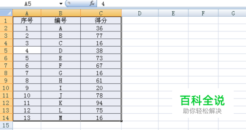 选中包含数据的所有单元格