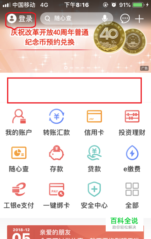 登录“工商银行”app。 点击“登录”,输入账户密码,登录“工商银行”app。