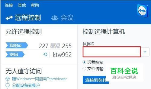 我们输入第一步的ID(即被控制电脑的ID),然后点击连接到伙伴。
