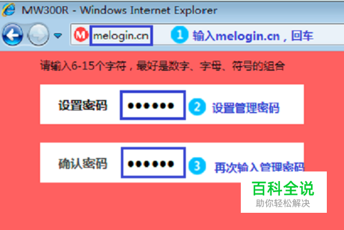 第二步、登录到设置页面 打开笔记本电脑上的浏览器,在浏览器中地址栏中输入登录地址并按下回车键——>然后按照提示,先给水星MW300RE 300M扩展器设置一个登录密码——>然后点击“确定”,进入到设置页面。