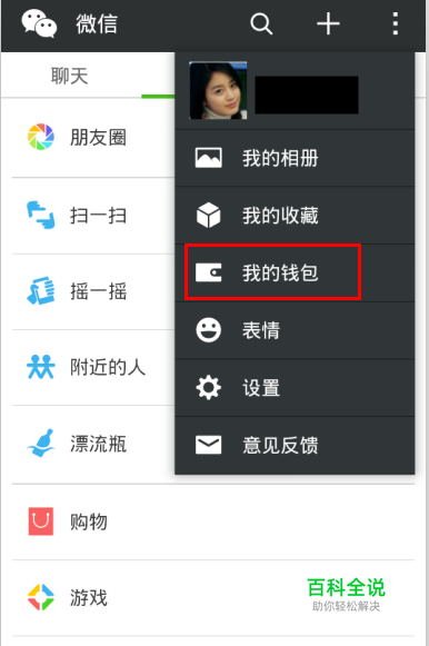 登陆打开个人微信首页,点击页面右上方的菜单按钮,选择我的钱包