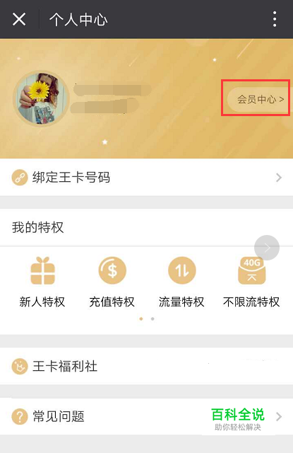 注:添加和解除亲情号码入口相同 1.进入【王卡助手】微信公众号,点击“特权”>>个人中心>>会员中心>>亲情特权
