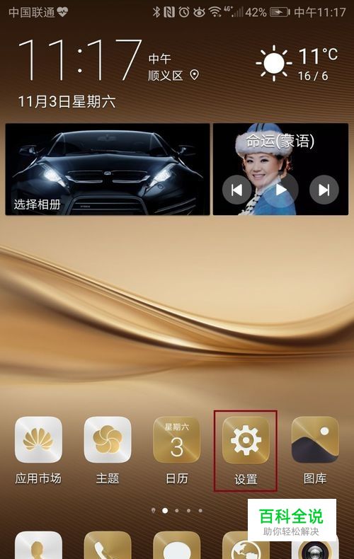 打开华为手机屏幕,并点击设置图标;