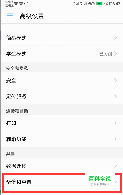 第三步就在重置和备份里就可以找到-恢复出厂设置