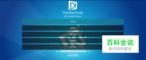 OneKeyTools简称“OK插件”或“OK”,是一款免费开源的Microsoft Office PowerPoint第三方综合性设计插件。功能涵盖形状、图片、调色、表格、图表、音频、辅助等领域。