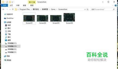 LOL英雄联盟游戏,是最近网络比较伙的网络游戏。有时候玩游戏玩尽兴的时候会自然不自然的截几张图,证明自己玩的比较好。但,退出游戏之后,去找截图,有的时候很是费劲不能尽快找到,究竟英雄联盟截图的图片在电脑那个地方放,然后如何才能最快最省事的找到呢?下面,小编就这个问题给大家讲解一下。如图,小编找到的截图记录