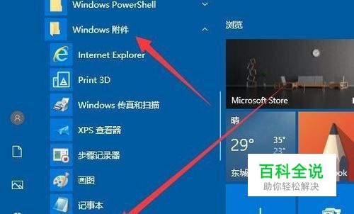 在Windows10系统桌面,依次点击“开始/Windows附件/截图工具”菜单项。
