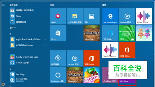 Windows10系统使用office2013的OneNote将图片文字转换为电子文字方法 在开始屏幕磁贴中,找到并左键双击:OneNote 2013打开巩荣的笔记本;