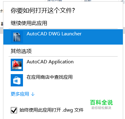 选择一个".dwg"文件,右键→打开方式→选择默认程序→选择“AutoCAD DWG Launcher"→确定。